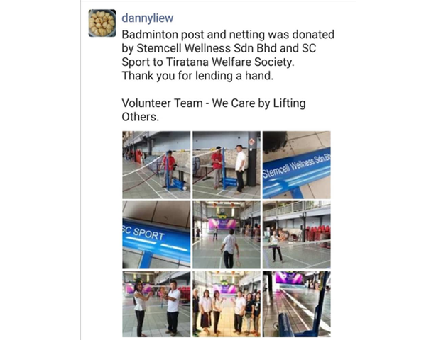 Sponsored badminton post and netting to Tiratana Welfare Society
